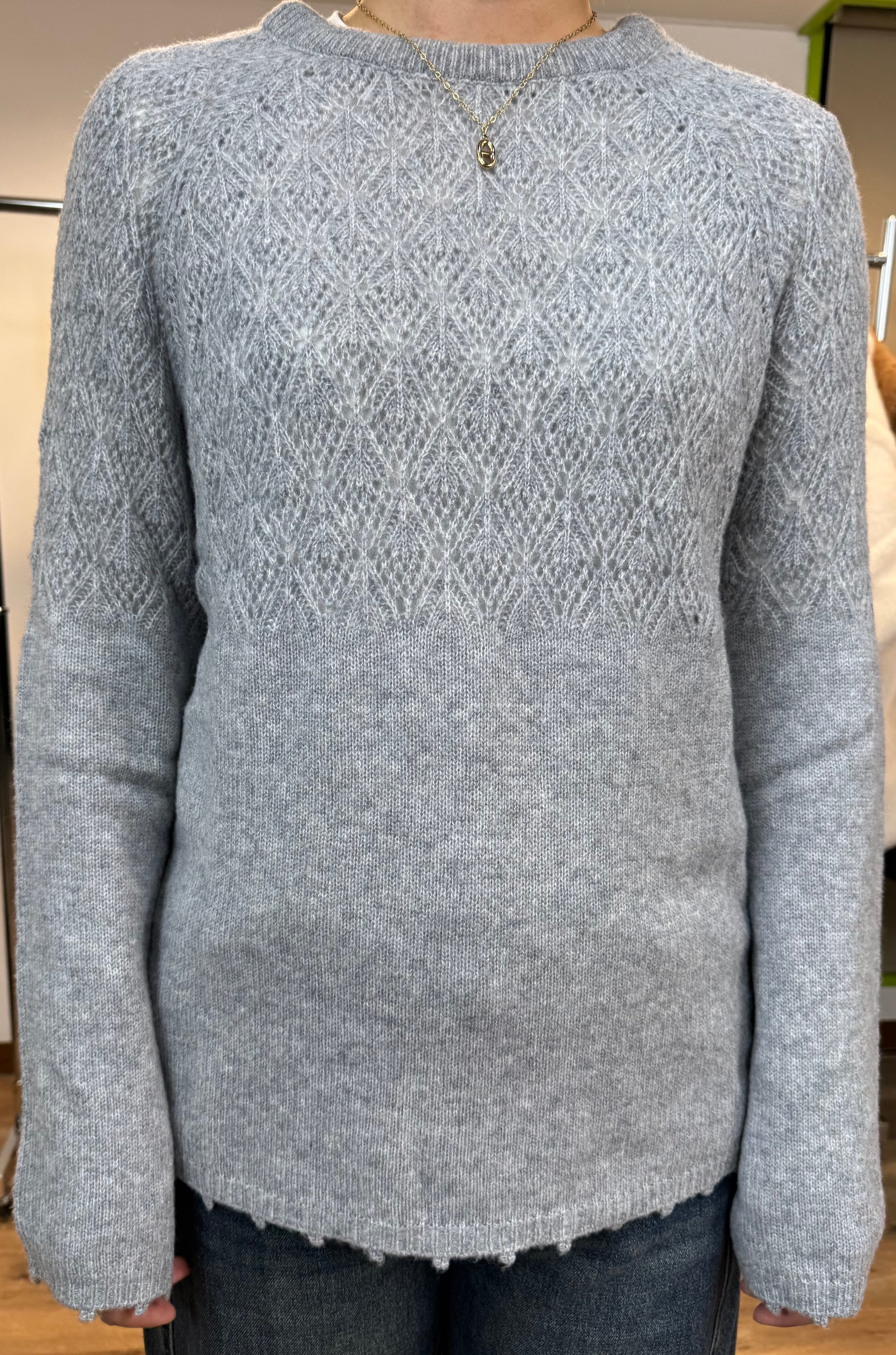 Linociel リノシエル オーガンジーのバックリボン付きグレーニット