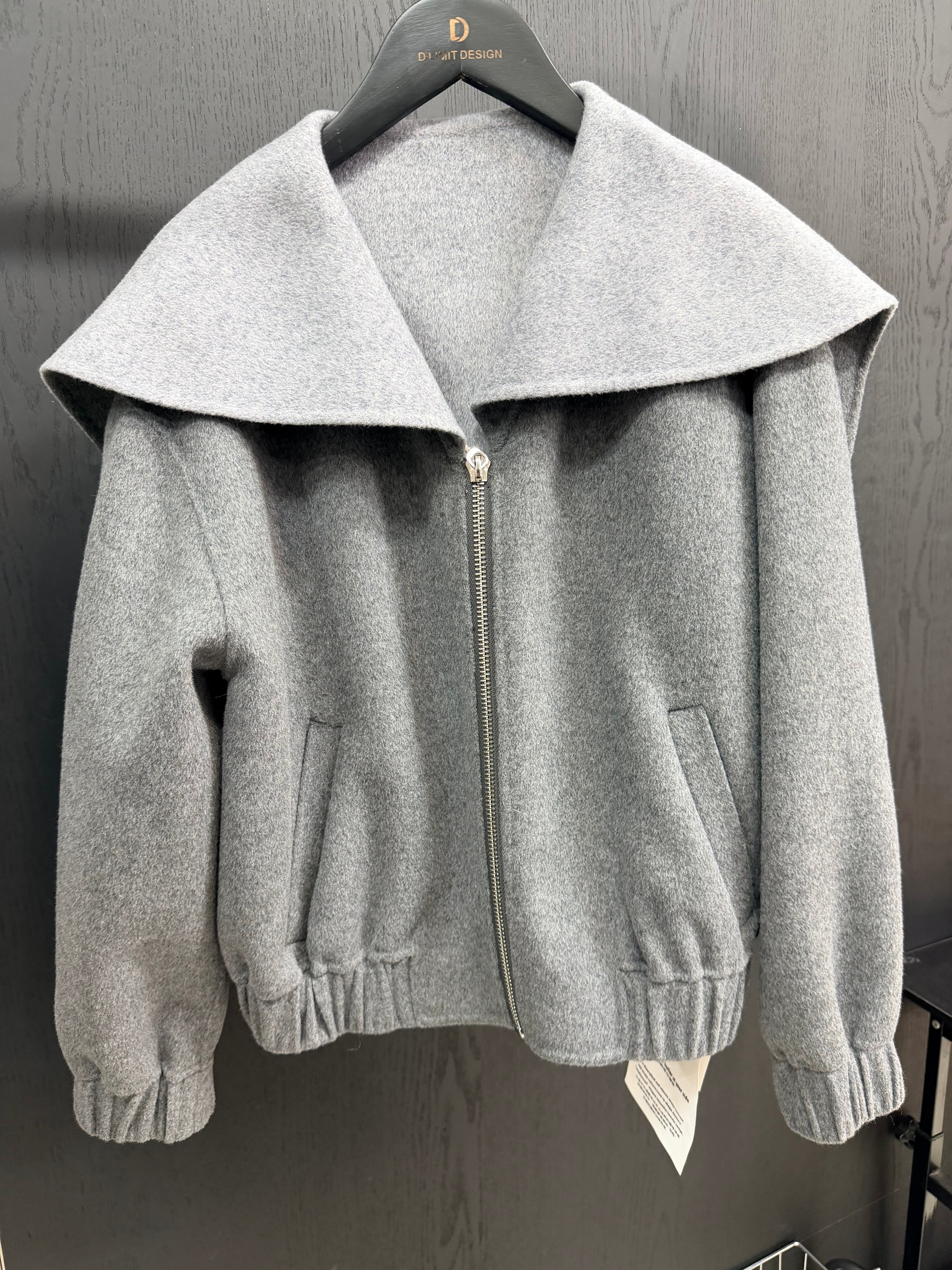 リノシエル カシミアミックスセーラーパーカー16カシミア10% ウール90%配合 グレーカラー