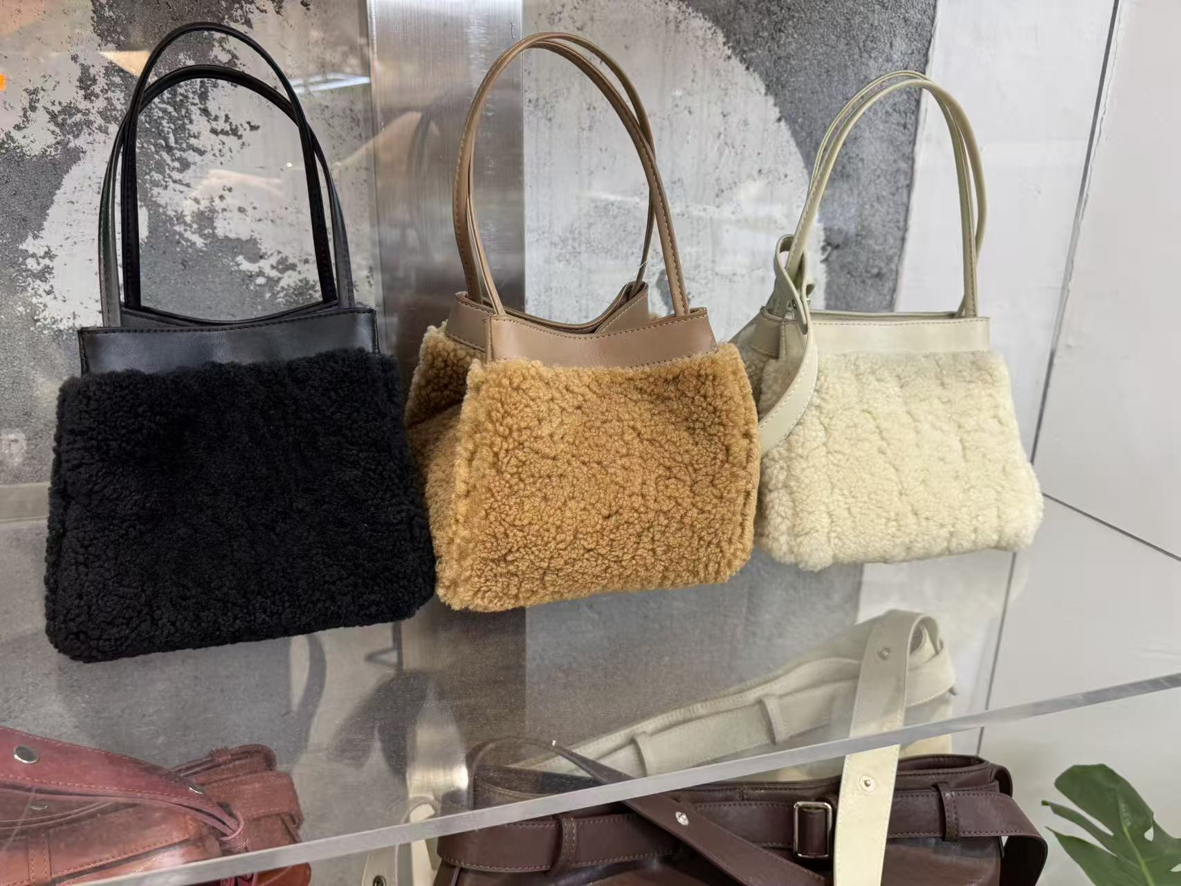 リノシエル リアルもこもこムートンファーバッグ 三色展開【オフホワイト・キャメル・ブラック】