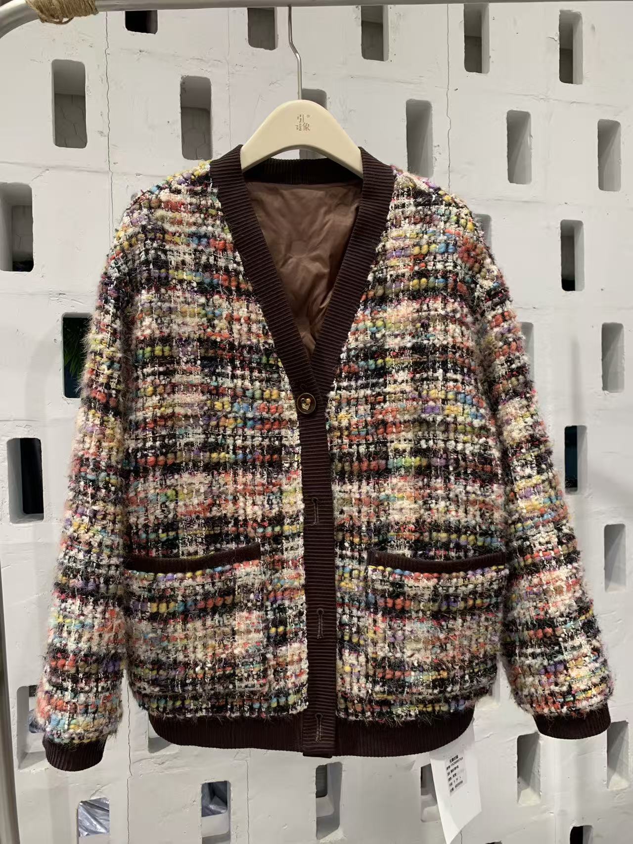 【P9】Linociel リノシエル ホワイトグースダウン入り 高品質ツイードジャケット26895703