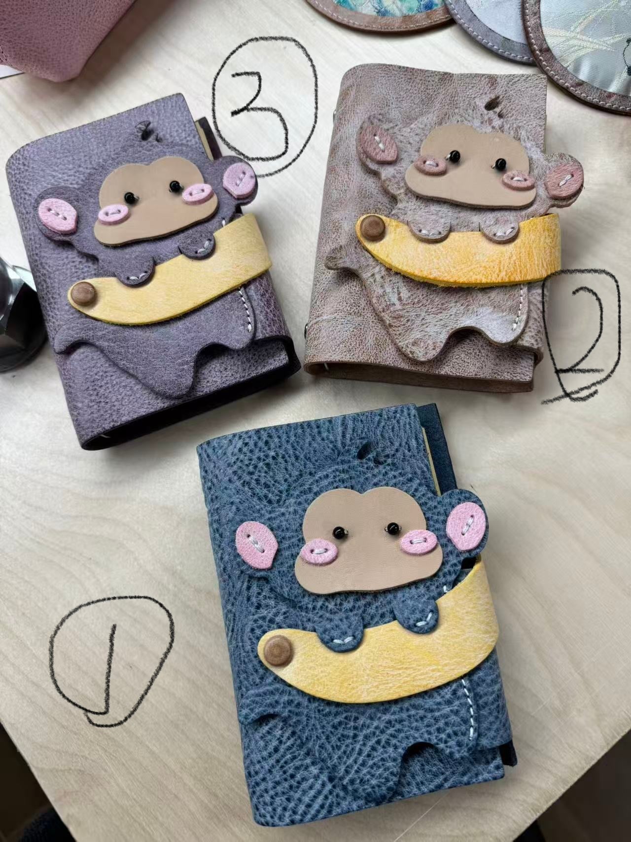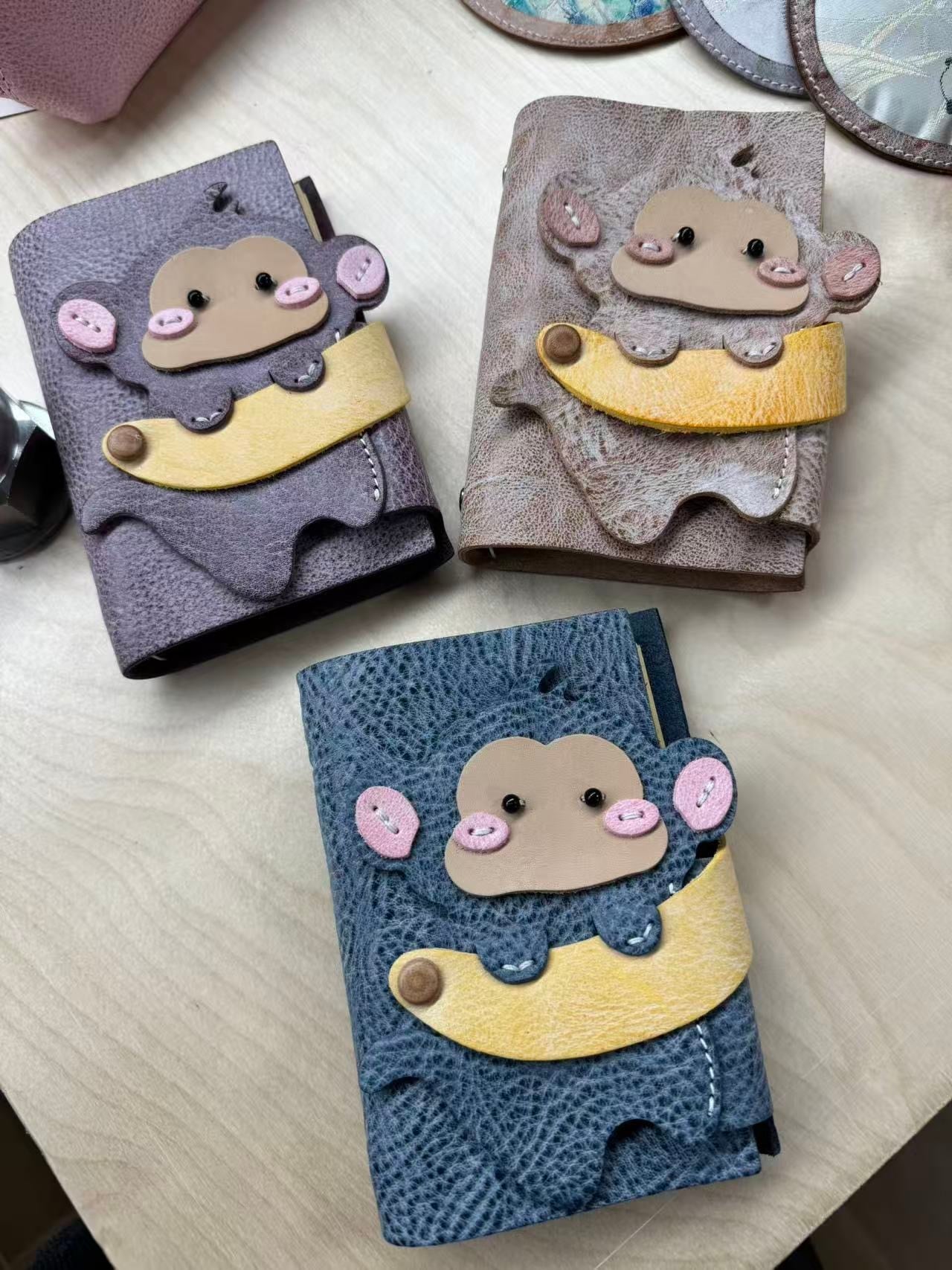 リノシエル 【お猿】本革手帳 三色展開