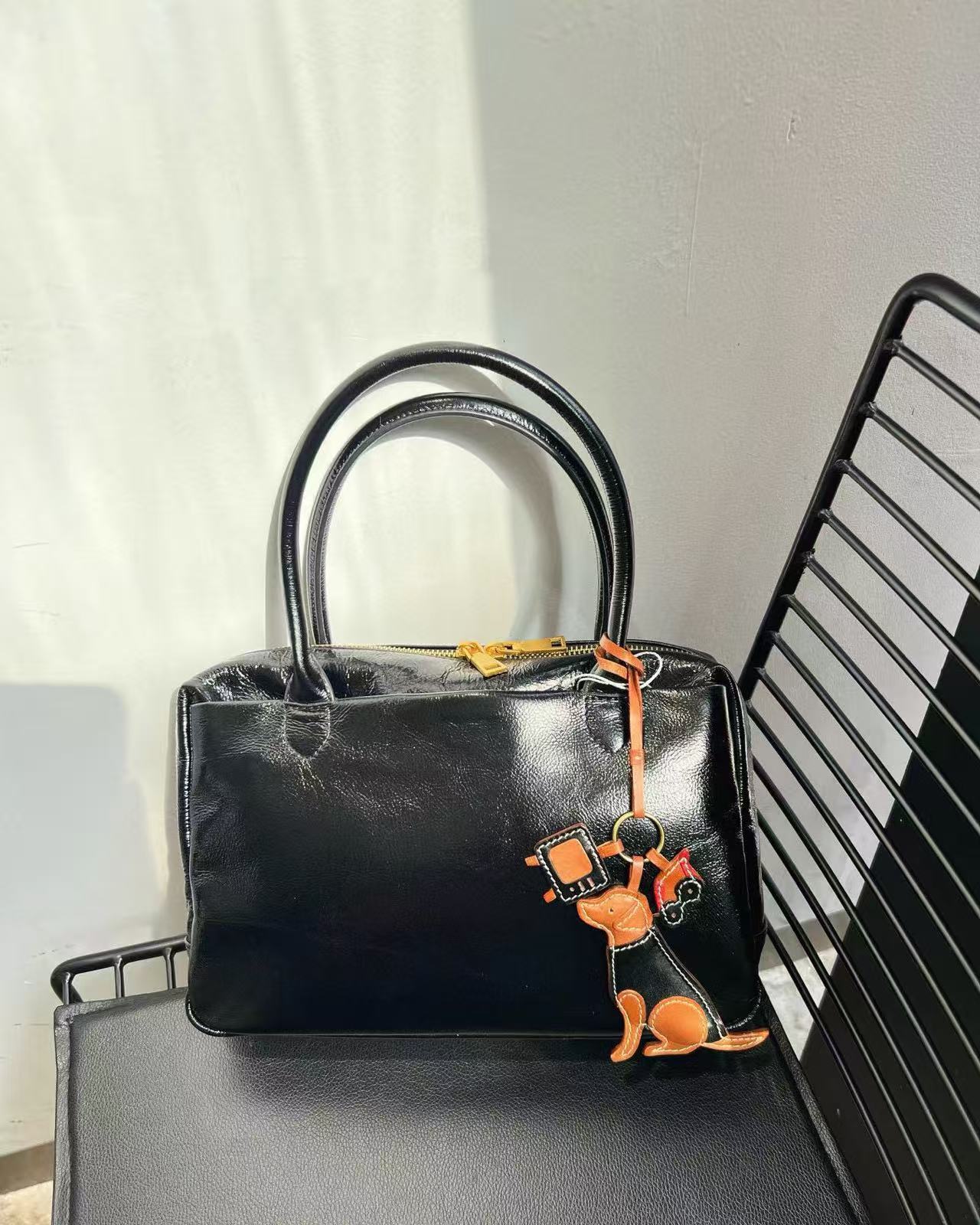 リノシエル 高級牛革ハンドバッグ149 ブラック&ブラウン