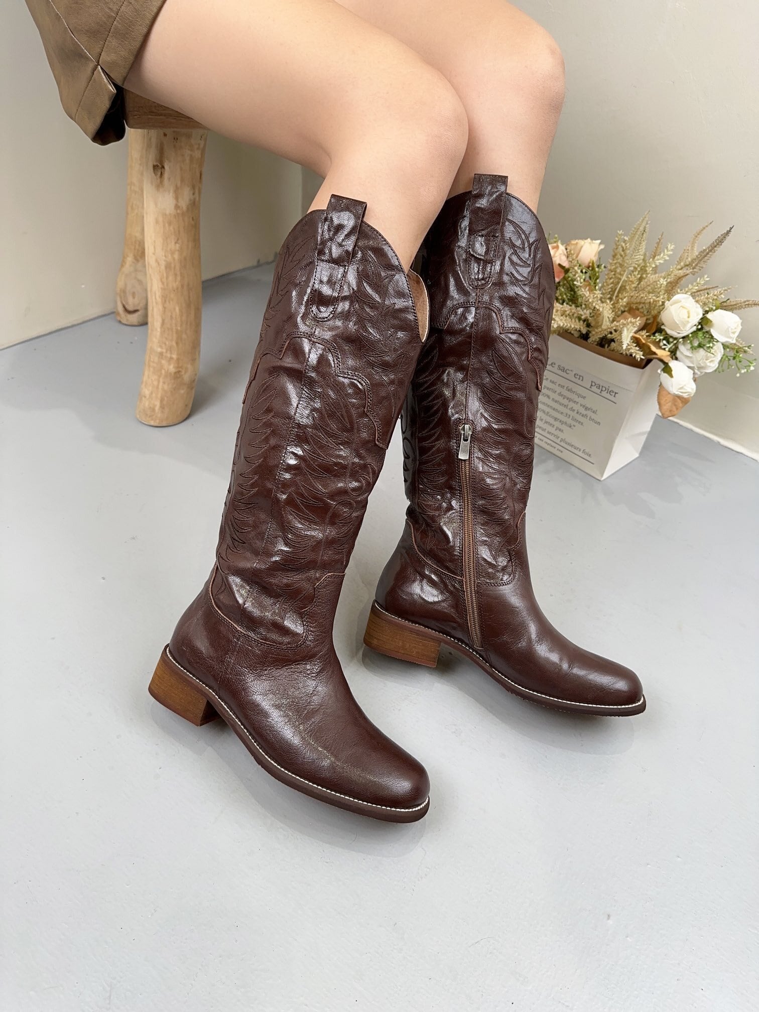 リノシエル 本革ロングブーツ レディース靴 988-1 ブラウン