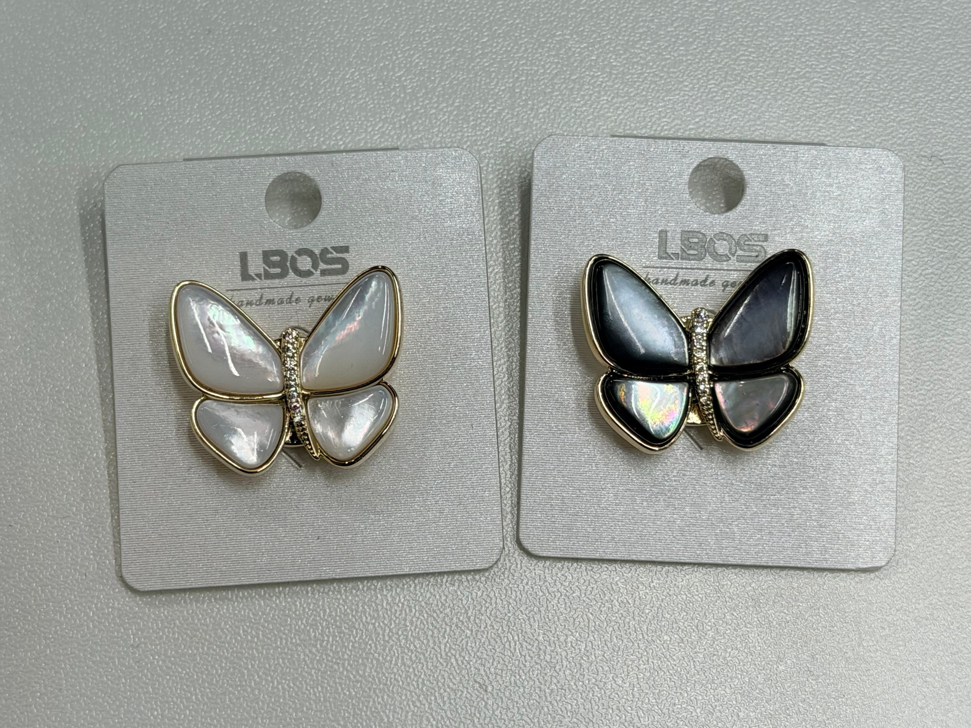 リノシエル蝶々ブローチ【リアルシェル】 ホワイト・グレーカラー